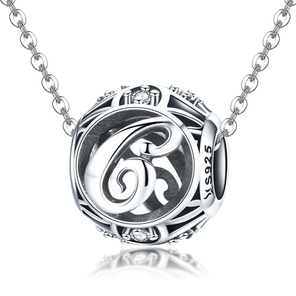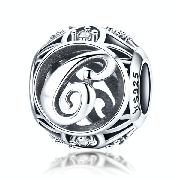 S925 Sterling Silver 26 English Letter Beads DIY Bracelet Necklace Accessories, Style:C