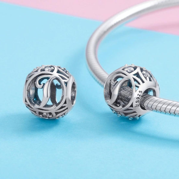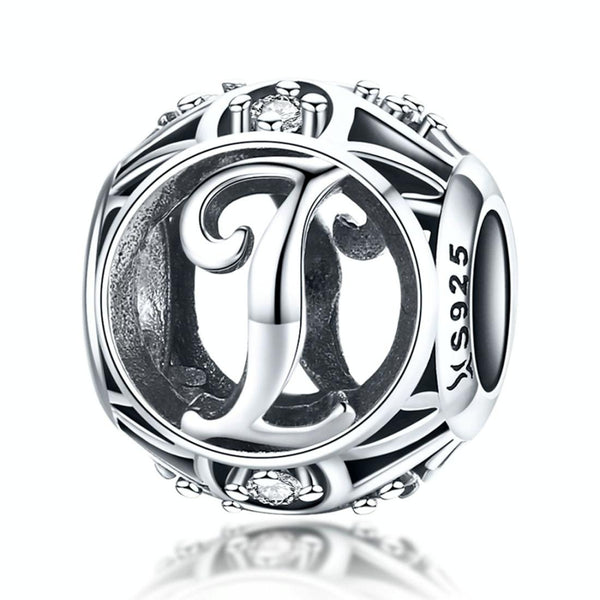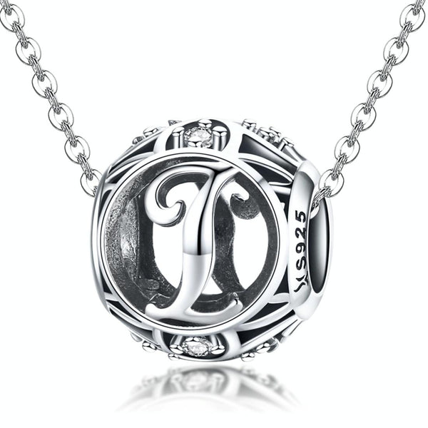 S925 Sterling Silver 26 English Letter Beads DIY Bracelet Necklace Accessories, Style:I