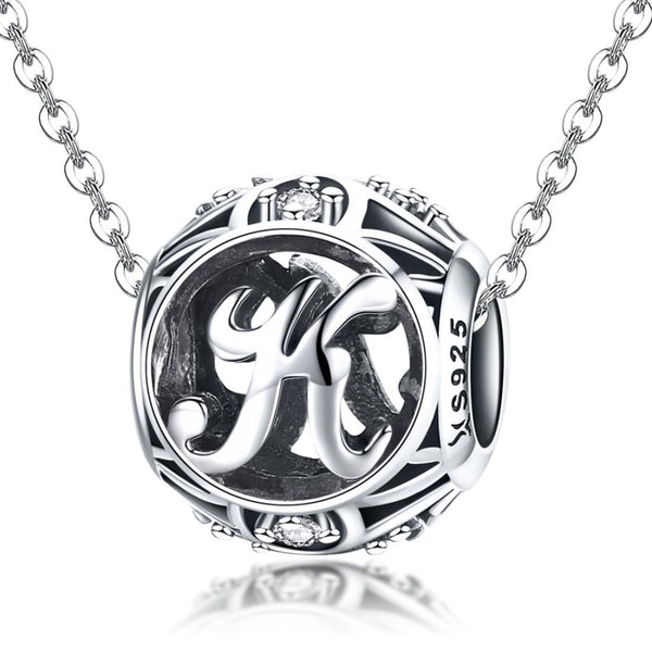 S925 Sterling Silver 26 English Letter Beads DIY Bracelet Necklace Accessories, Style:K