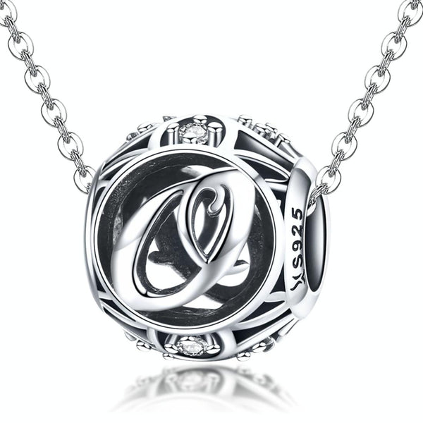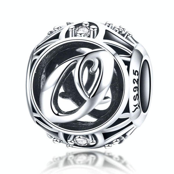 S925 Sterling Silver 26 English Letter Beads DIY Bracelet Necklace Accessories, Style:O