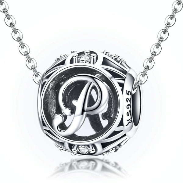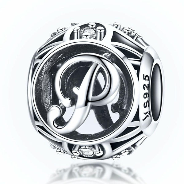 S925 Sterling Silver 26 English Letter Beads DIY Bracelet Necklace Accessories, Style:P