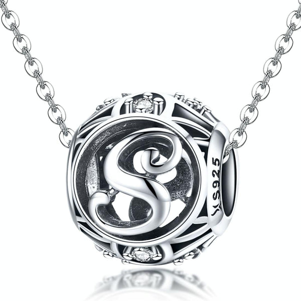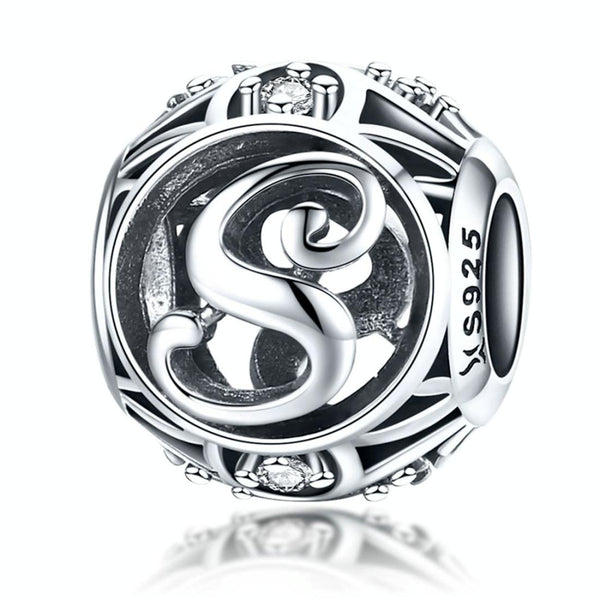S925 Sterling Silver 26 English Letter Beads DIY Bracelet Necklace Accessories, Style:S