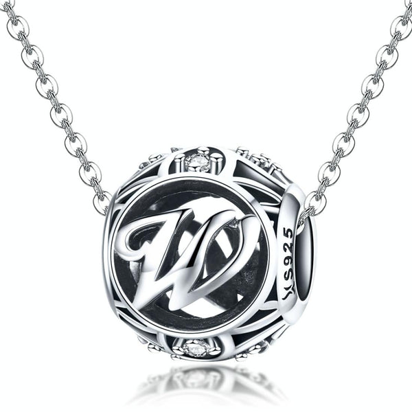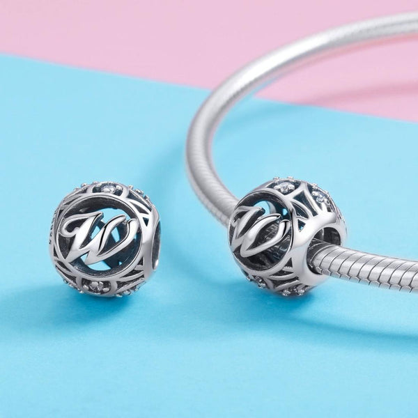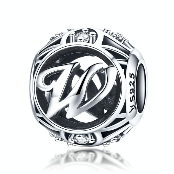 S925 Sterling Silver 26 English Letter Beads DIY Bracelet Necklace Accessories, Style:W