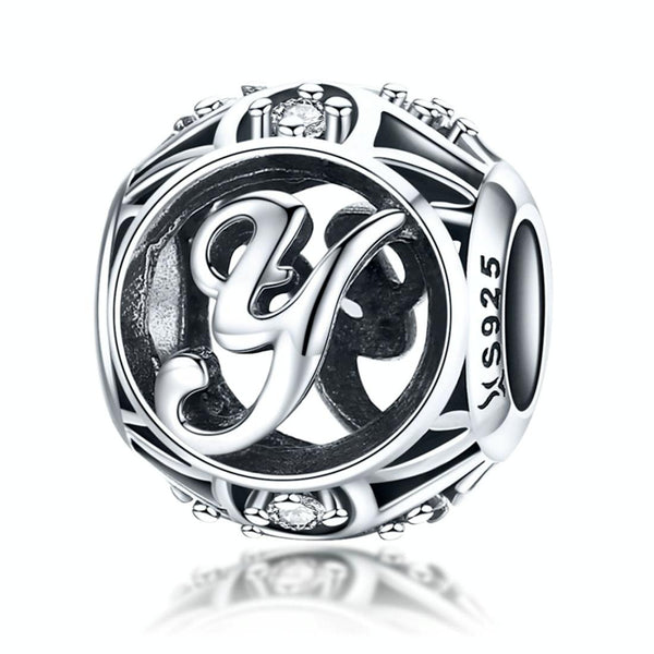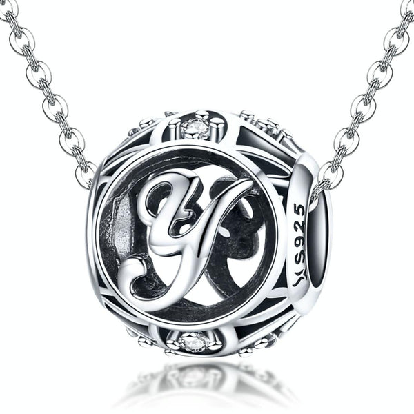S925 Sterling Silver 26 English Letter Beads DIY Bracelet Necklace Accessories, Style:Y