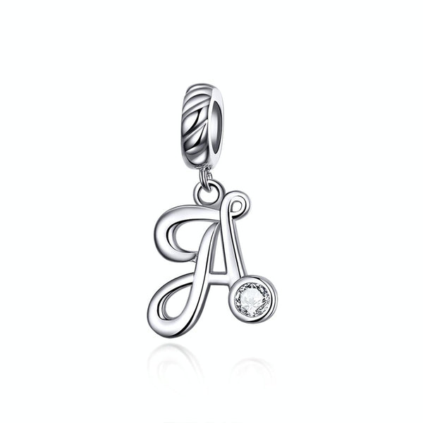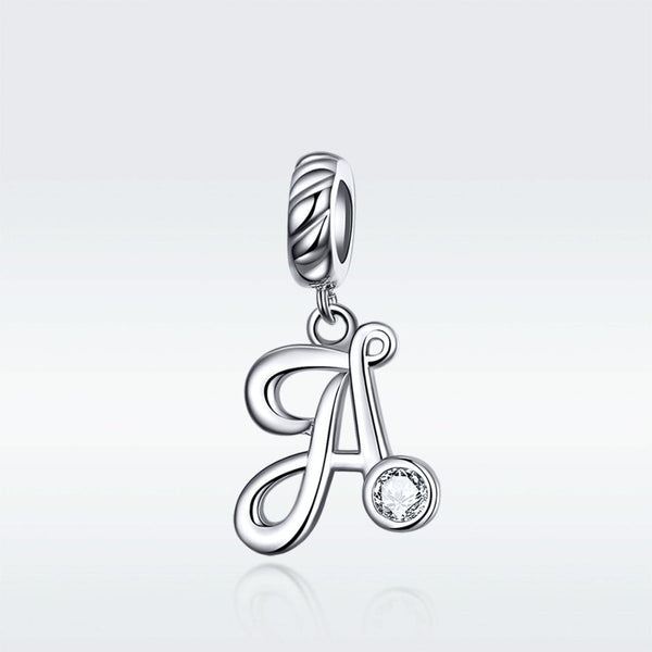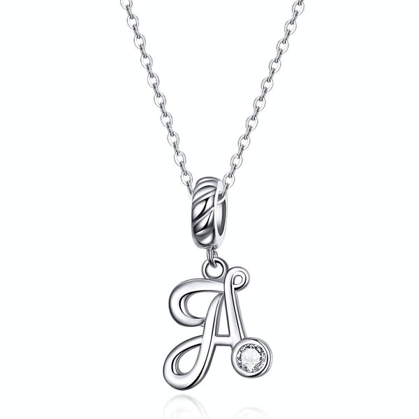 S925 Sterling Silver 26 English Letter Pendant DIY Bracelet Necklace Accessories, Style:A