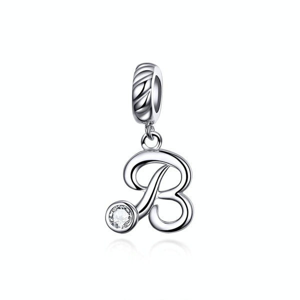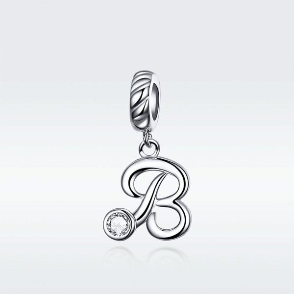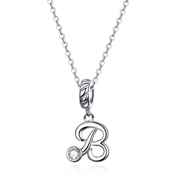 S925 Sterling Silver 26 English Letter Pendant DIY Bracelet Necklace Accessories, Style:B