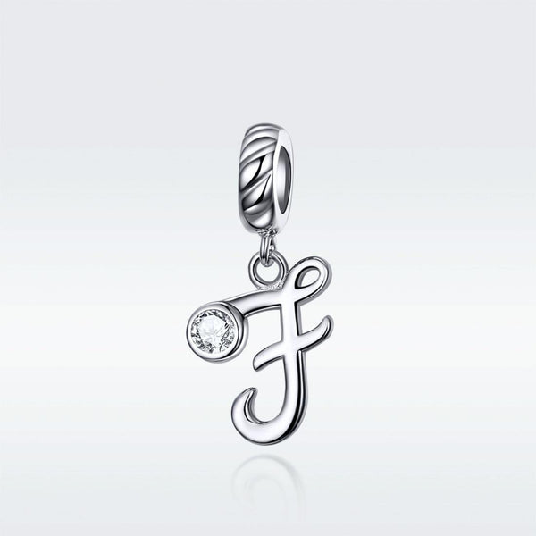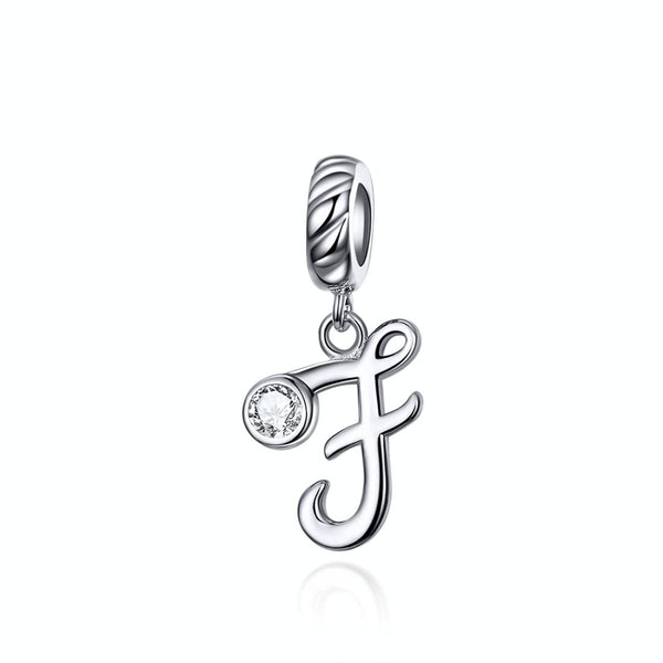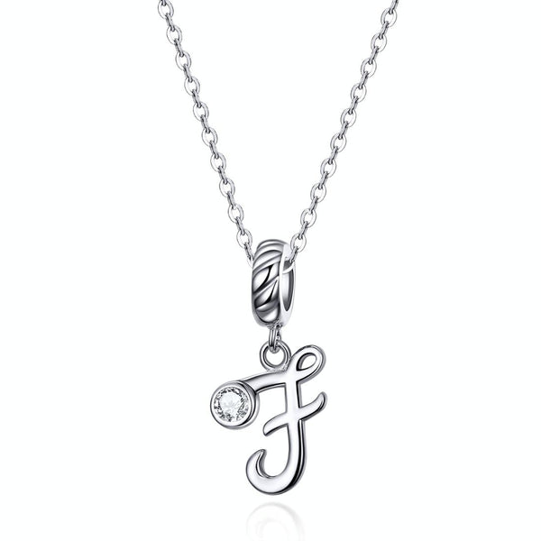 S925 Sterling Silver 26 English Letter Pendant DIY Bracelet Necklace Accessories, Style:F