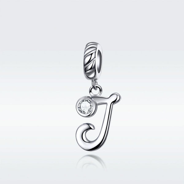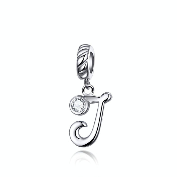 S925 Sterling Silver 26 English Letter Pendant DIY Bracelet Necklace Accessories, Style:J