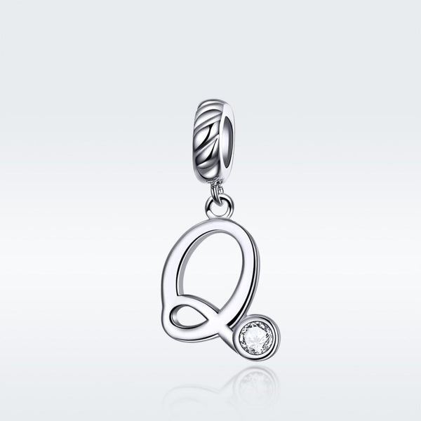S925 Sterling Silver 26 English Letter Pendant DIY Bracelet Necklace Accessories, Style:Q