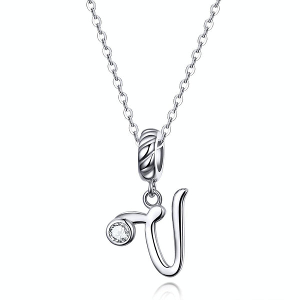 S925 Sterling Silver 26 English Letter Pendant DIY Bracelet Necklace Accessories, Style:V