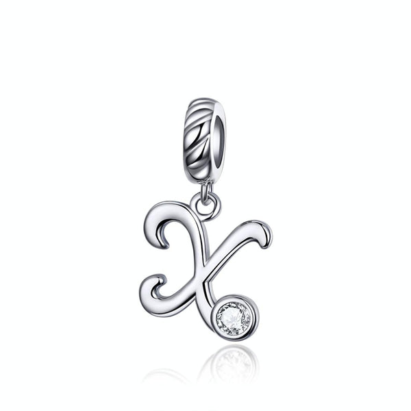 S925 Sterling Silver 26 English Letter Pendant DIY Bracelet Necklace Accessories, Style:X