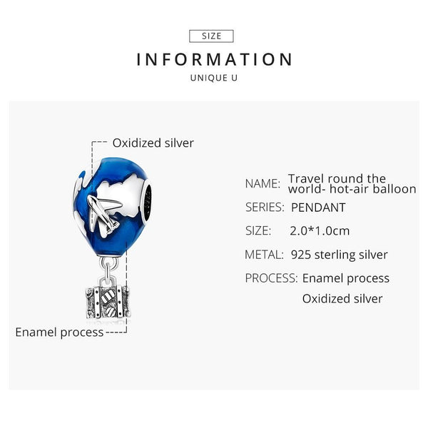 S925 Sterling Silver Airplane Hot Air Balloon Pendant DIY Bracelet Necklace Accessories