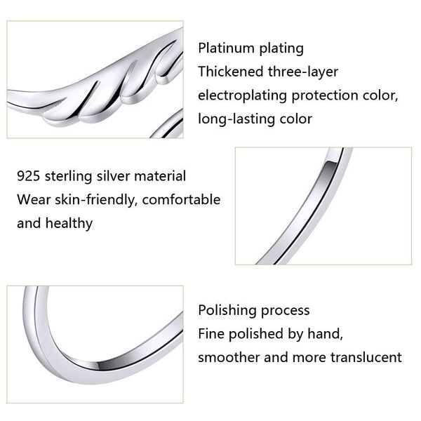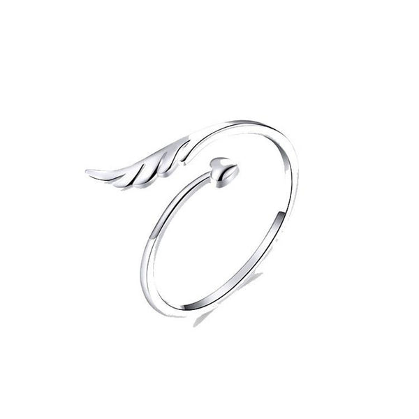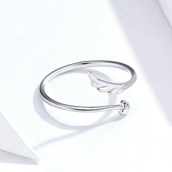 S925 Sterling Silver Angel Wings Open Ring White Gold Plated Open Ring