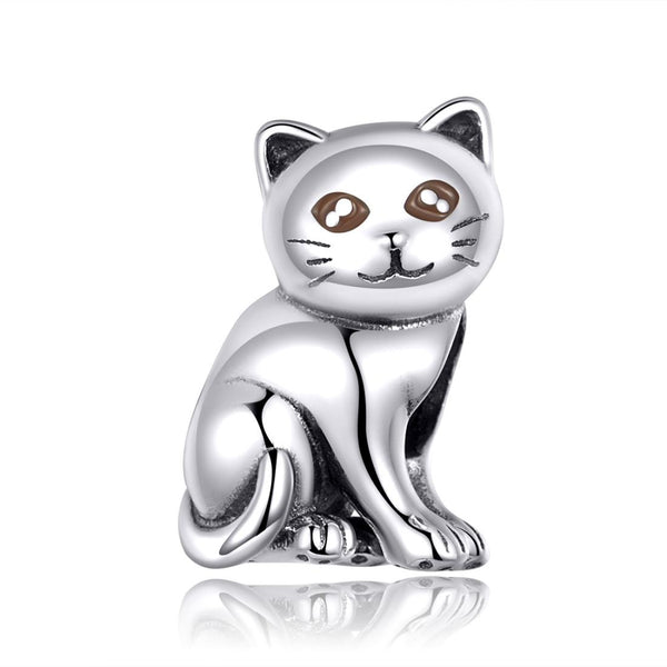 S925 Sterling Silver Animal Series Cute Cat Loose Beads DIY Bracelet Beaded