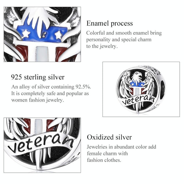 S925 Sterling Silver Bald Eagle Beads DIY Bracelet Necklace Accessories