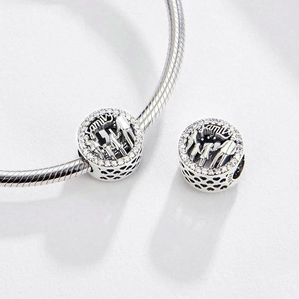 S925 Sterling Silver Beads DIY Bracelet Charm Family Hollow Jewelry Accessories