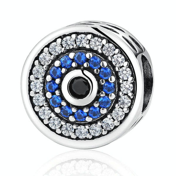 S925 Sterling Silver Beads Personality Inlaid Blue Eyes Round Bracelet Accessories Beads