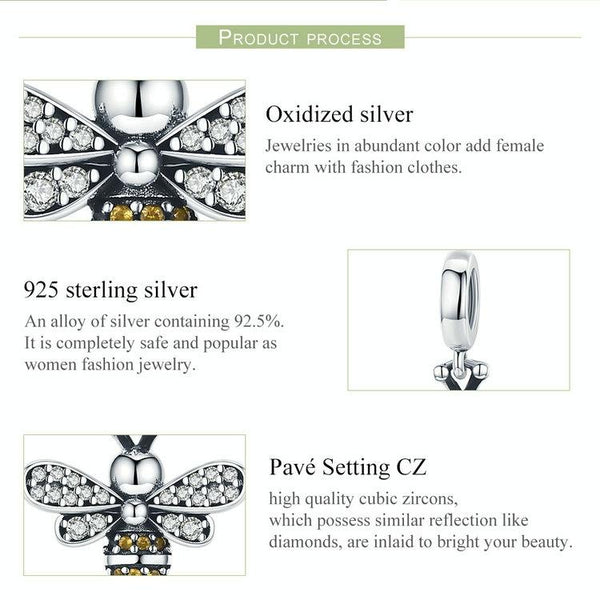 S925 Sterling Silver Bee Story Charm DIY Beaded Bracelet Accessories