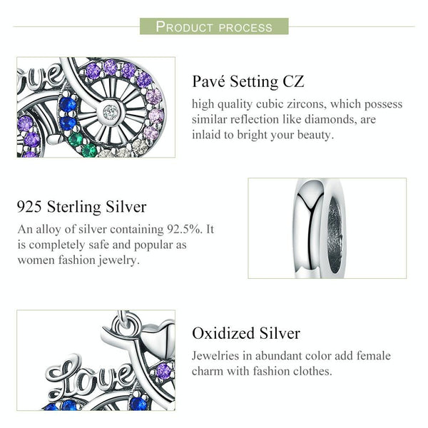 S925 Sterling Silver Bicycle Pendant Color Inlaid Zircon Beads DIY Bracelet Charm Accessories, Style: Pendant