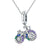 S925 Sterling Silver Bicycle Pendant Color Inlaid Zircon Beads DIY Bracelet Charm Accessories, Style: Pendant + Bare Chain