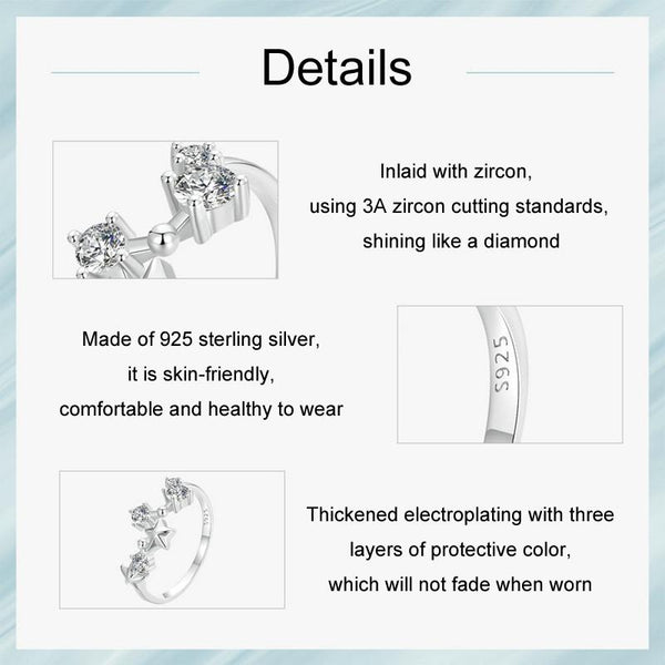 S925 Sterling Silver Big Dipper Ring Star Female Ring, Size: No.8(SCR1005)