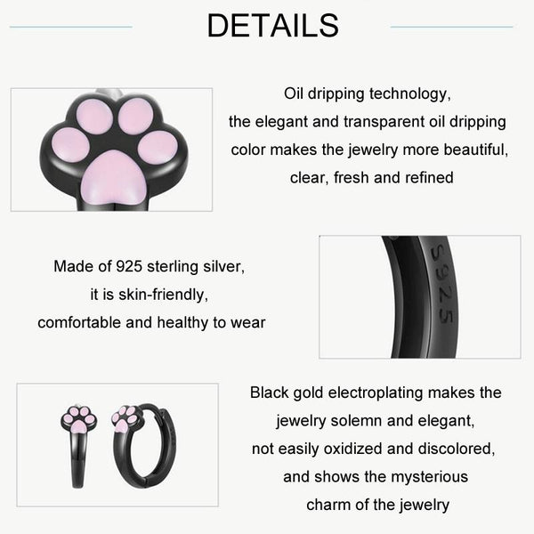S925 Sterling Silver Black Gold Plated Cute Cat Claw Earrings