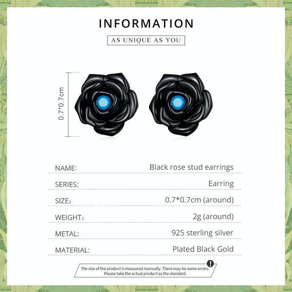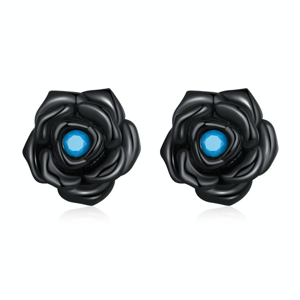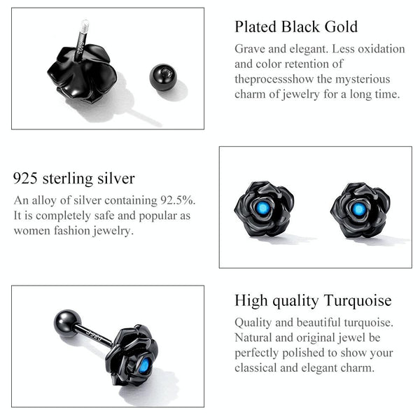 S925 Sterling Silver Black Rose Ear Stud Women Earrings
