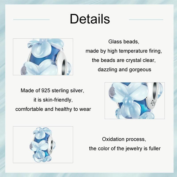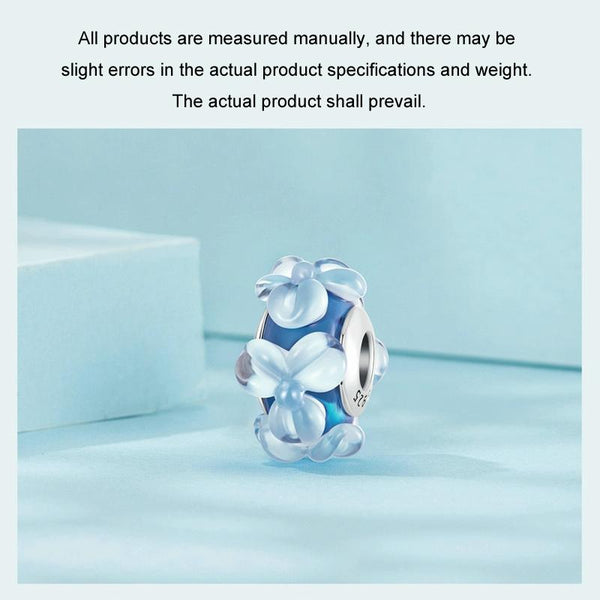 S925 Sterling Silver Blue Flower Glass Beads DIY Jewelry(SCC2737)