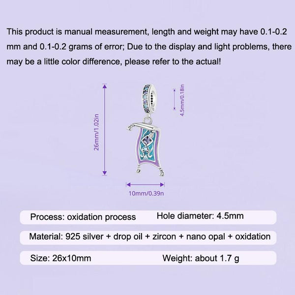 S925 Sterling Silver Blue Purple Magic Carpet DIY Pendant Bracelet Accessories Loose Beads Jewelry