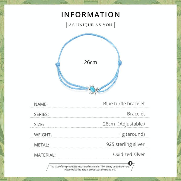 S925 Sterling Silver Blue Turtle Bracelet Women Jewelry