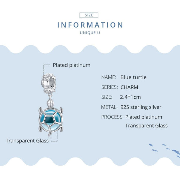 S925 Sterling Silver Blue Turtle Pendant DIY Bracelet Necklace Accessories