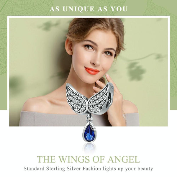 S925 Sterling Silver Blue Wings Drop Shaped Loose Beads DIY Bracelet Accessories
