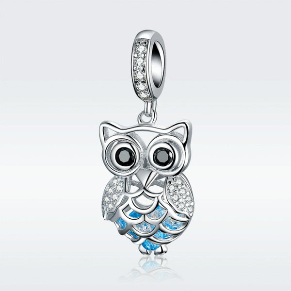 S925 Sterling Silver Blue Zircon Movable Owl Pendant DIY Bracelet Accessories, Style:Pendant