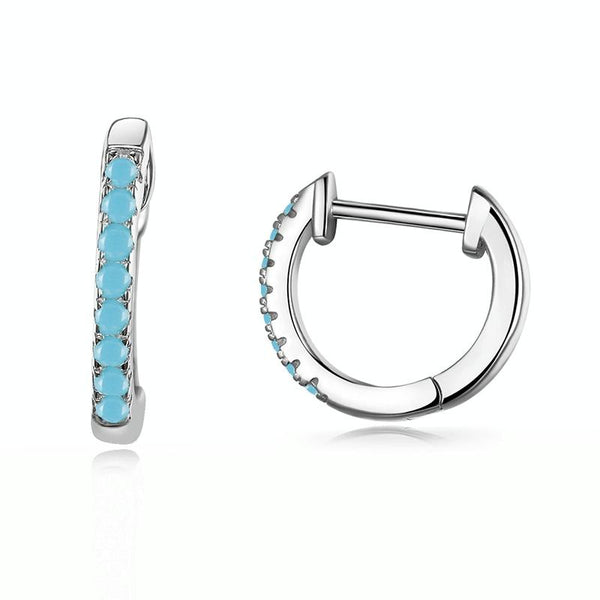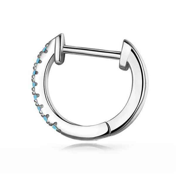 S925 Sterling Silver Circle Earrings Zircon Earrings (Blue Silver)