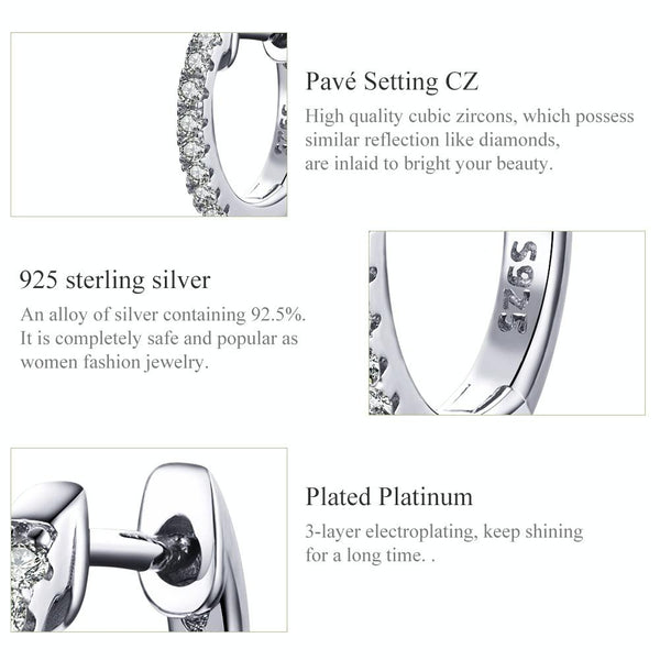 S925 Sterling Silver Circle Earrings Zircon Earrings, Color:White