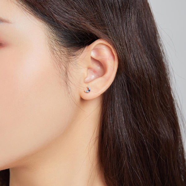 S925 Sterling Silver Colored Zircon Moon Women Earrings