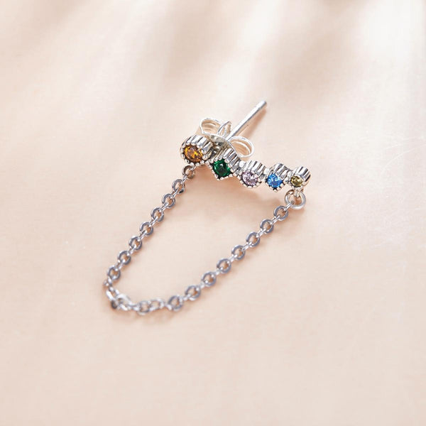 S925 Sterling Silver Colored Zircon Rainbow Heart Women Earrings
