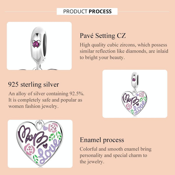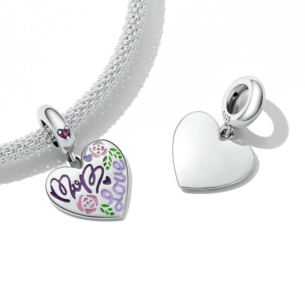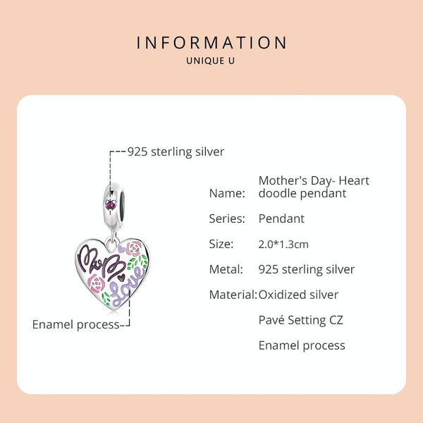 S925 Sterling Silver Colorful Doodle Heart Pendant DIY Bracelet Necklace Accessories