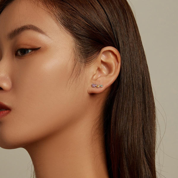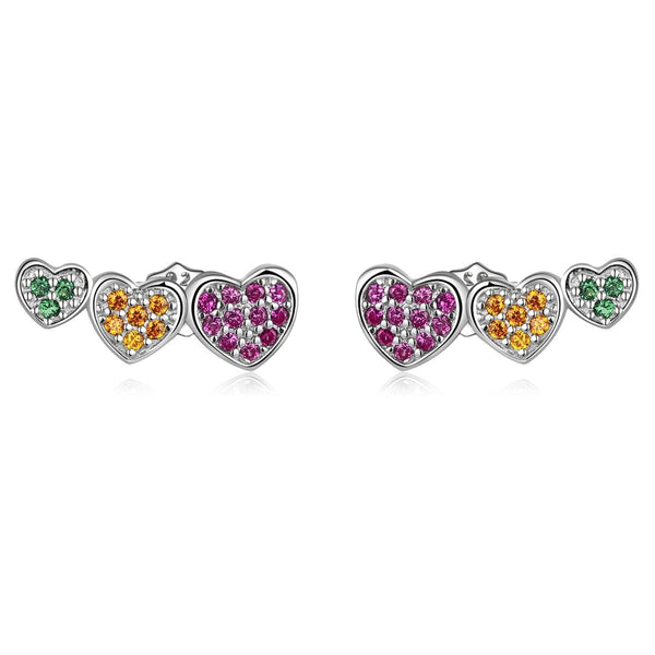 S925 Sterling Silver Colorful Heart Ear Stud Women Earrings