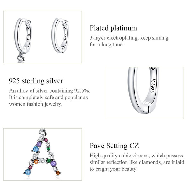 S925 Sterling Silver Colorful Zircon Letters S Asymmetry Women Earrings