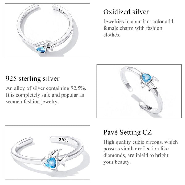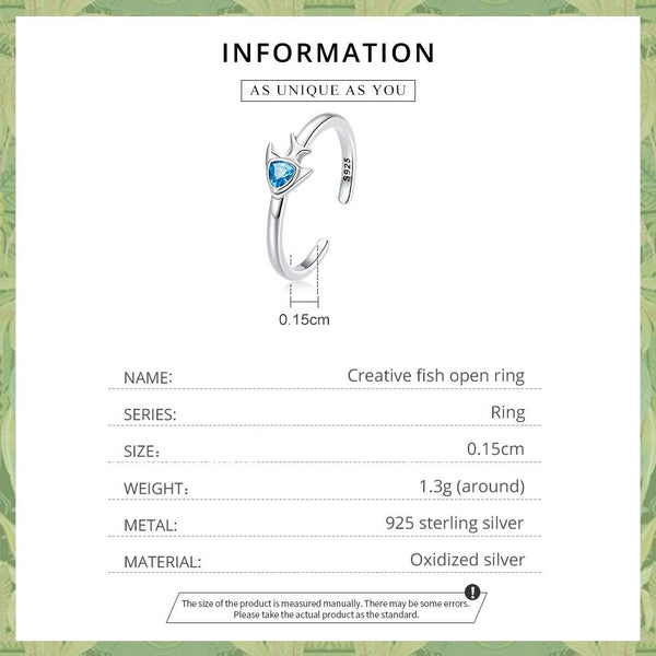 S925 Sterling Silver Creative Fish Women Open Ring