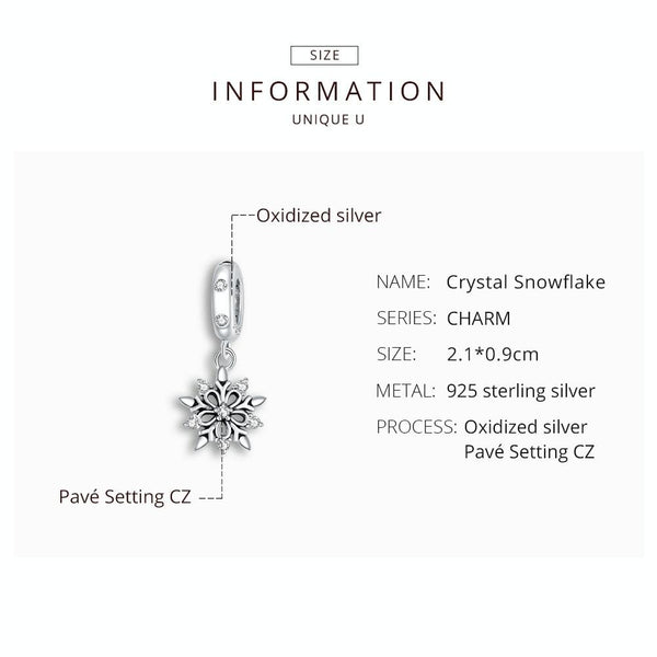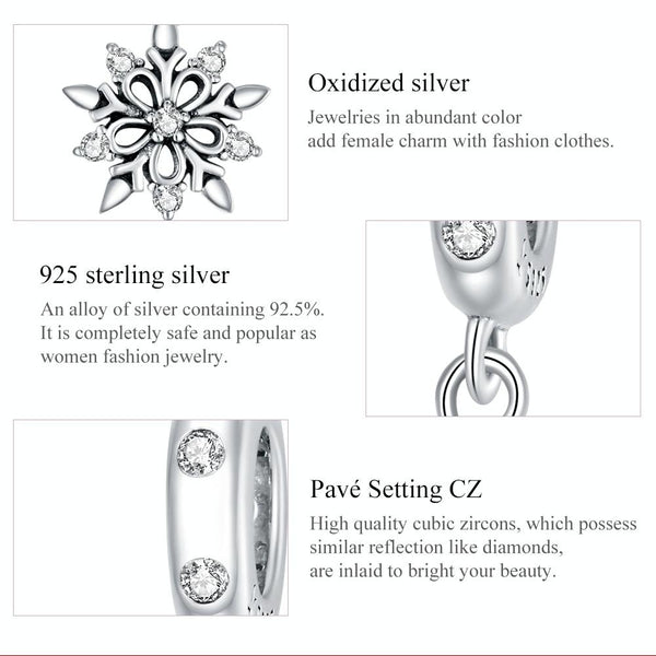 S925 Sterling Silver Crystal Snowflake Pendant DIY Bracelet Necklace Accessories