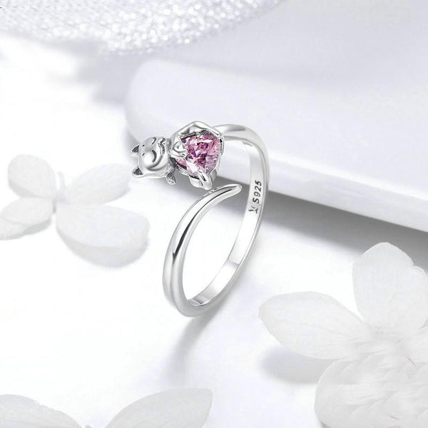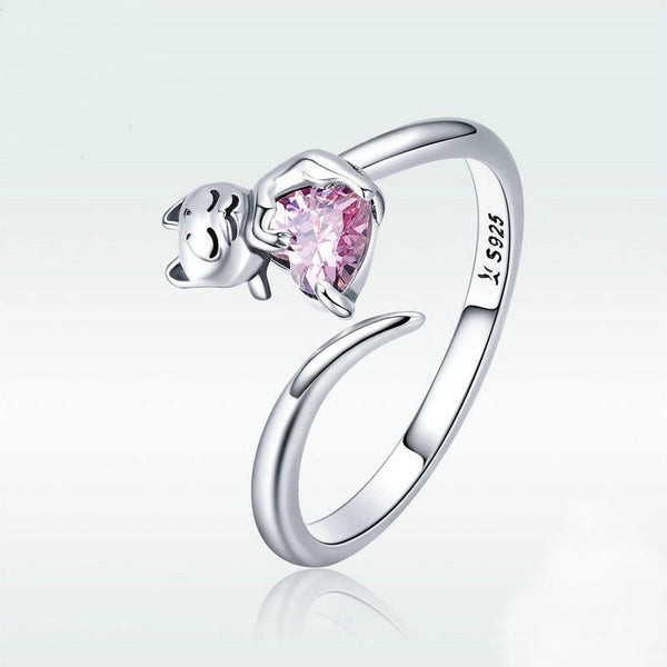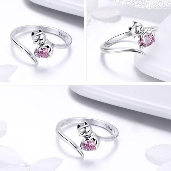 S925 Sterling Silver Cute Cat Diamond Ring