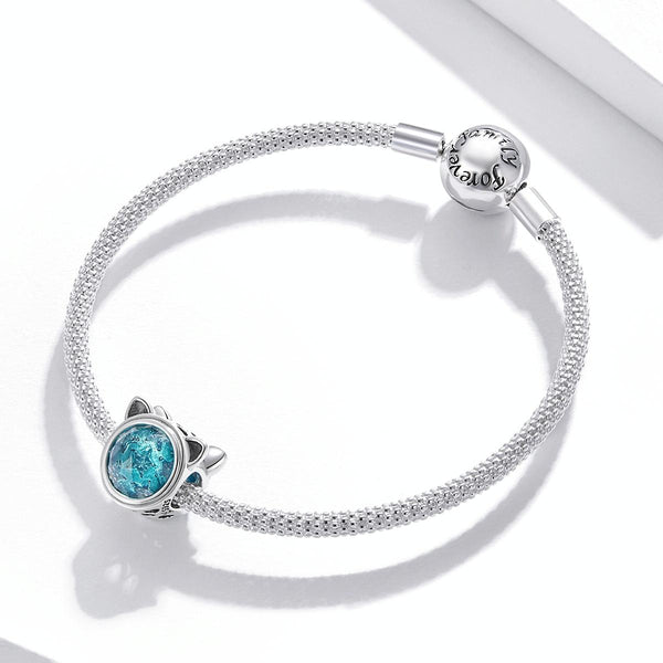 S925 Sterling Silver Cute Cat Ears Beads DIY Bracelet Necklace Accessories