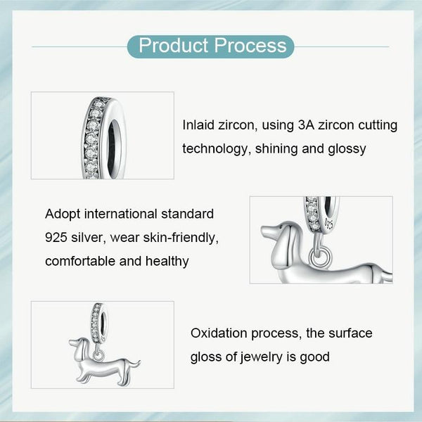 S925 Sterling Silver Cute Little Dachshund Pendant DIY Beaded Bracelet Accessories