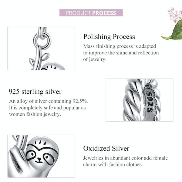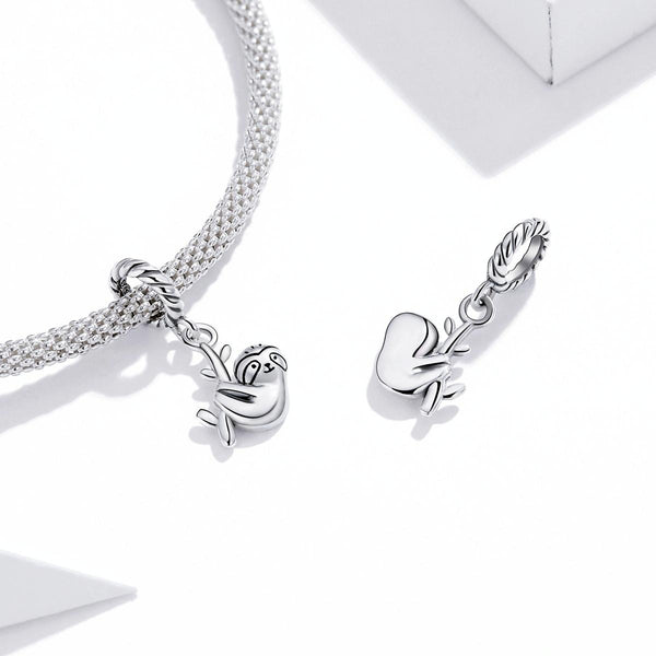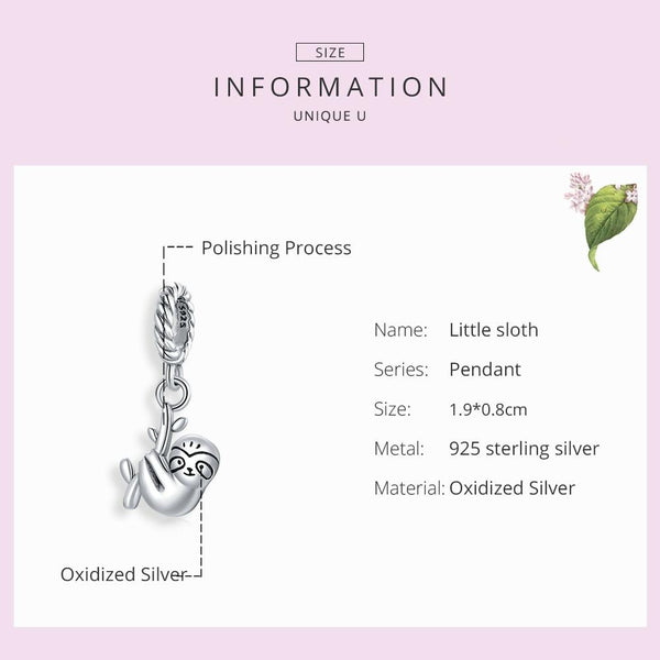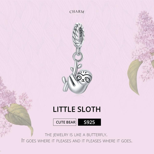 S925 Sterling Silver Cute Little Sloth Pendant DIY Bracelet Necklace Accessories