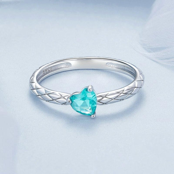 S925 Sterling Silver Diamond Pattern Heart Ring(No. 8)