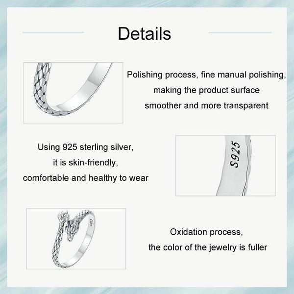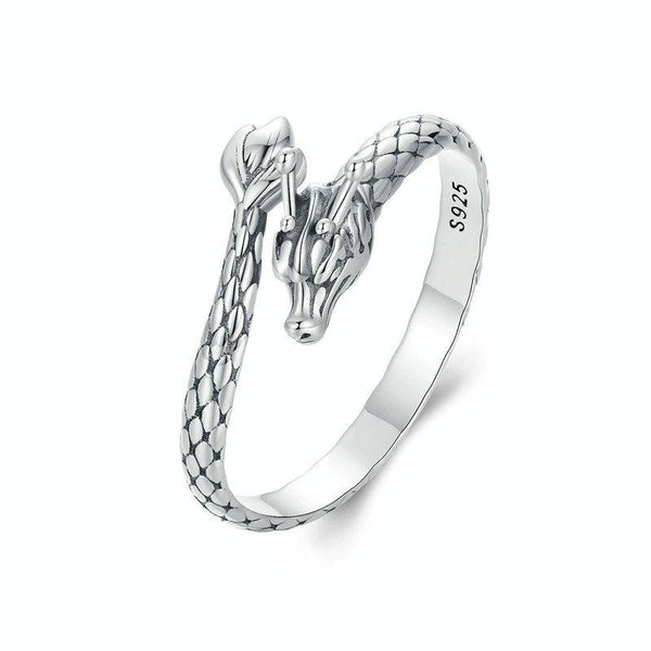 S925 Sterling Silver Dragon Vintage Winding Open Adjustable Ring(SCR1018-E)