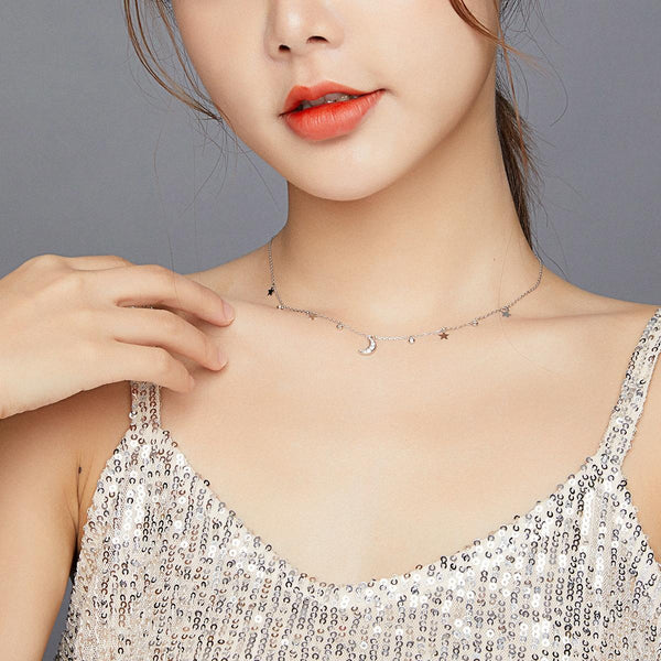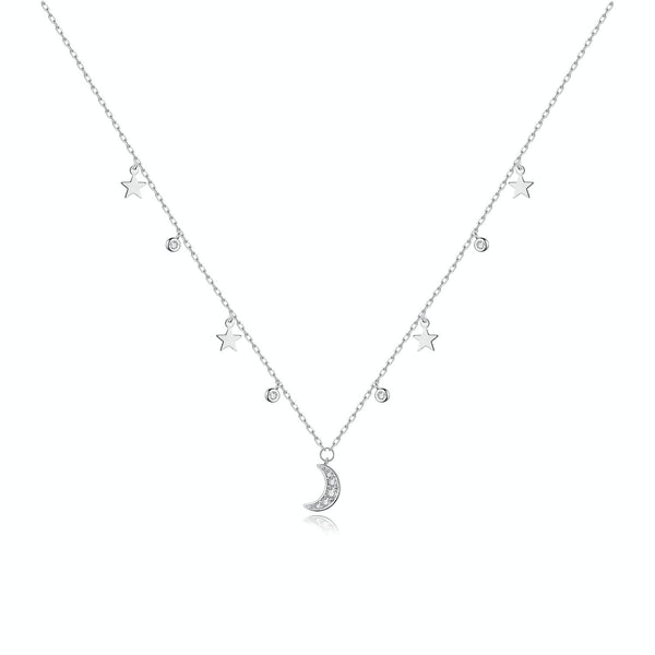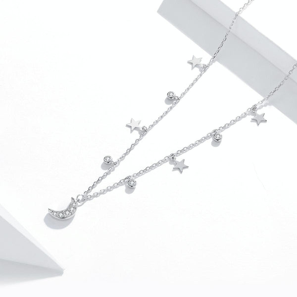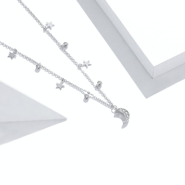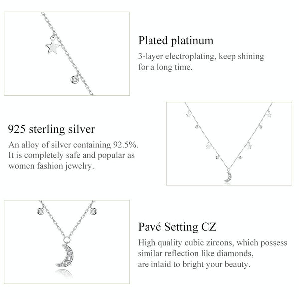 S925 Sterling Silver Dream Star Moon Zircon Women Nacklace Jewelry