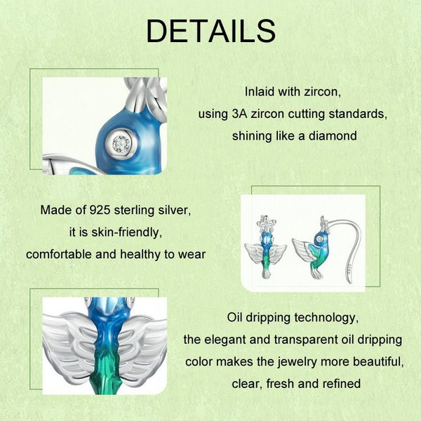 S925 Sterling Silver Early Spring Hummingbird Women Earrings(BSE990)